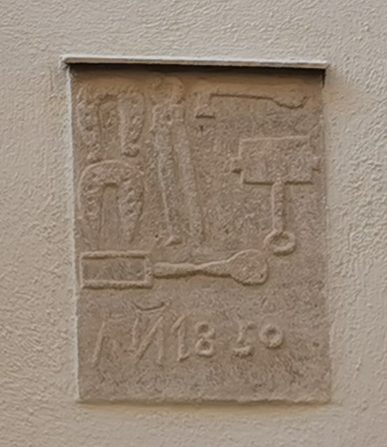 A la façana podem veure un relleu de pedra de l’any 1850, de 30 x 50 cm, entre els dos balcons del primer pis. Aquest element està catalogat  a l’inventari del Patrimoni Arquitectònic de la Generalitat de Catalunya. S’hi poden observar 2 ferradures, uns alicates, una clau, una enclusa i un llambroix, eines per ferrar cavalls.